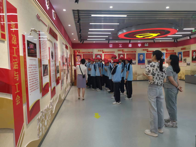 在展馆内,一幅幅珍贵图片、一枚枚劳动奖章、一件件实物展品、一段段感人事迹、一段段极其珍贵的视频画面,展示了平凉市不同时代、不同岗位的劳模风采,吸引着同学们长时间驻足观看。马骞带领同学们边参观边讲解,从历届党和国家领导人对劳动模范的高度评价讲起,什么是劳动模范,我们要学习什么,结合一个个劳模的先进事迹,在讲解中与同学们互动,同学们从刚开始的小声作答到后来异口同声的回答,“学习他们爱岗敬业,勇于奉献的精神”“我们要热爱劳动、崇尚劳动”……