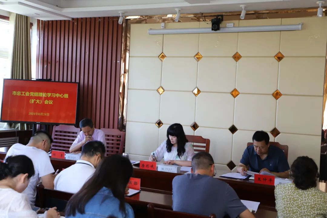 6月24日,市总工会召开党组理论学习中心组(扩大)会议,传达学习有关会议、讲话精神,研究贯彻落实意见。市总工会机关和工人文化宫全体干部职工参加会议。