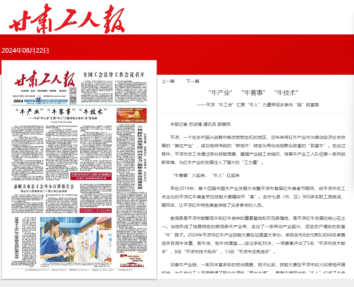 平凉,一个在乡村振兴战略中焕发勃勃生机的地区,近年来将红牛产业作为推动经济社会发展的“首位产业”,成功地将传统的“耕地牛”转变为带动当地群众致富的“致富牛”。在此过程中,德彩网通过举办技能竞赛、建强产业链工会组织、培育牛产业工人队伍等一系列创新举措,为红牛产业的发展注入了强大的“工力量”。