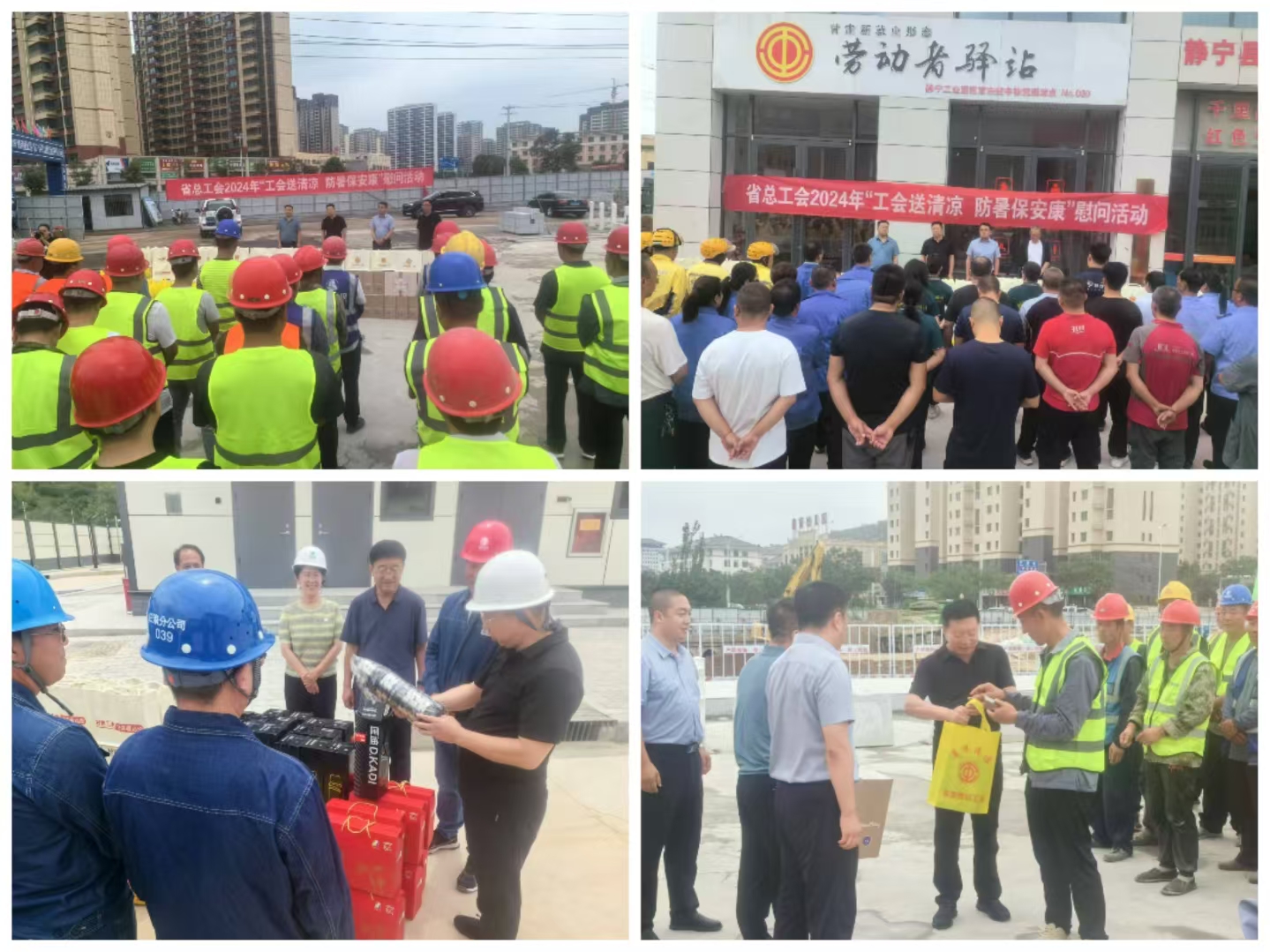 炎炎夏日,酷暑难耐,户外劳动者们又迎来了夏日高温“烤”验。为全面做好夏季防暑降温工作,8月2日,德彩网党组书记、常务副主席赵锋受省总工会委托,先后赴静宁、庄浪和市交通运输综合执法队开展“省总工会2024年‘工会送清凉 防暑保安康’慰问活动”,为在户外高温一线工作的新就业形态劳动者、重大项目建设工地的建筑工人和农民工、交通运输综合执法人员等493名劳动者送上夏凉被、茶叶、冰糖、静宁苹果汁等价值约17万元的慰问品。