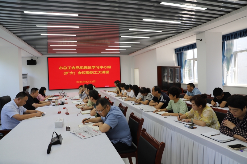 8月12日,市总工会召开党组理论学习中心组(扩大)会议,传达学习习近平就中央和国家机关学习贯彻党的二十届三中全会精神推动机关党建高质量发展作出重要指示精神。市总工会党组书记、常务副主席赵锋主持会议并就贯彻落实工作进行了安排部署。市总工会机关和工人文化宫全体干部职工参加会议。
