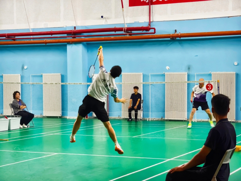 随着白色羽毛球擦着球网急坠,羽毛球馆内的欢呼声瞬间炸响 ——9 月 24 日上午,德彩网代表队的王军刚以一记刁钻的后场杀球拿下赛点,场边队友拍着栏杆大喊 “好球”,观众席里的羽毛球爱好者激动地站了起来,手里的加油牌晃得亮眼。