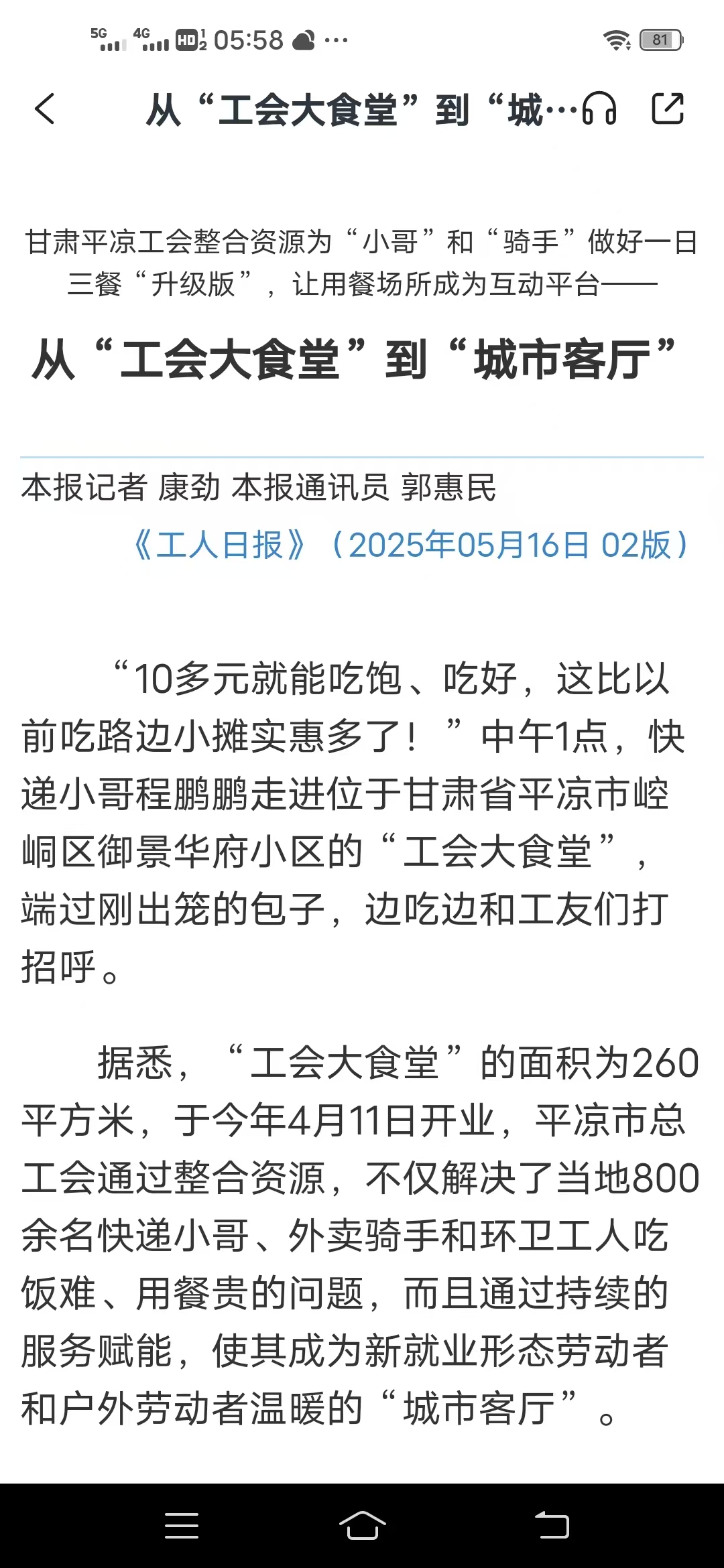 【工人日报.新闻聚焦】甘肃平凉:从“工会大食堂”到“城市客厅”