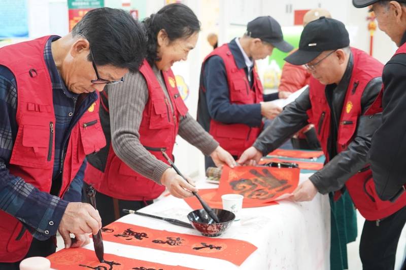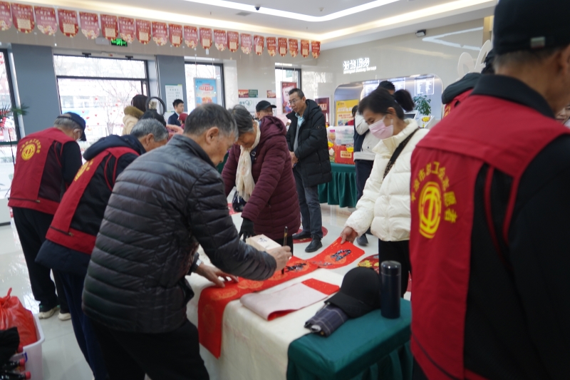 活动现场,虽然外边天气寒冷,但是大家的热情丝毫不减,书法志愿者们饱蘸浓墨、笔走龙蛇,一张张喜气满满的福字,一幅幅寓意美好的春联铺满了活动现场。不少快递行业工作人员和职工群众也纷纷前来,有的挑选自己喜欢的春联,有的在桌子旁等待现场书写的春联,场面喜庆热闹,大家纷纷为这场暖心活动点赞。