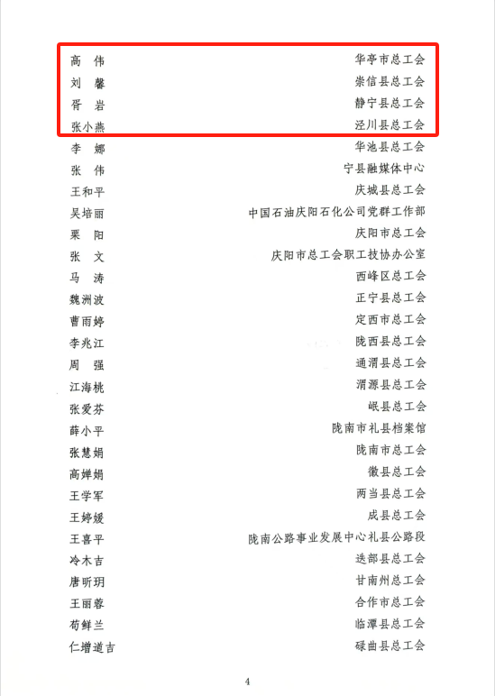 【喜报】平凉市5名《甘肃工人报》社优秀通讯员获通报表扬