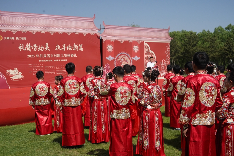 甘肃省总工会在平凉举行“礼赞劳动美•执手绘新篇”百对职工集体婚礼